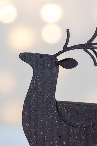 This charming, metal reindeer decoration has an antique brown finish, which adds a touch of rustic elegance.