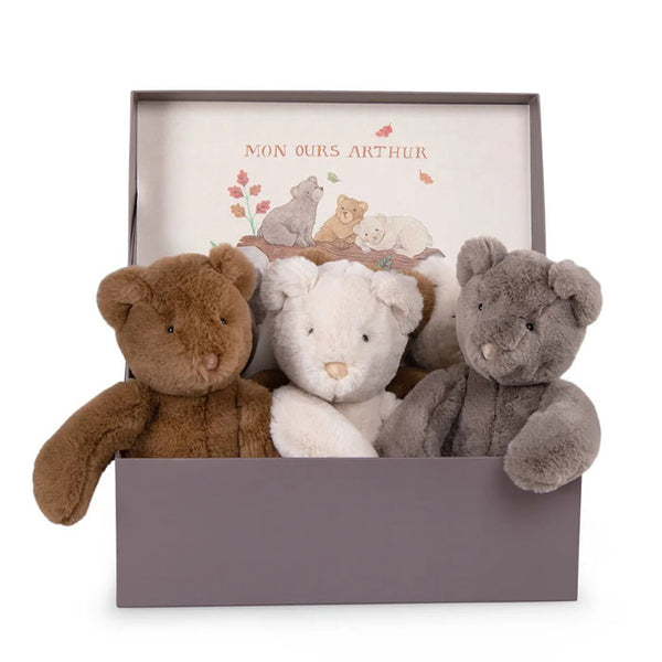 Available in three lovely colours, they each have charming features and round button ears.